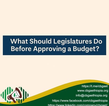 As legislative bodies across Ethiopia begin reviewing budget proposals submitted by the executive branch, the Center for Budgetary Governance Advocacy (CBGA) highlights the critical steps that legislatures must take to ensure public budgets are transparent, inclusive, and accountable.